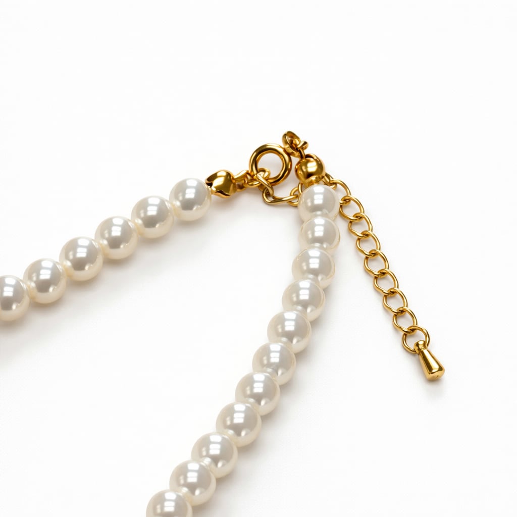 ほどよい粒感のパールが首元をやさしく照らし、