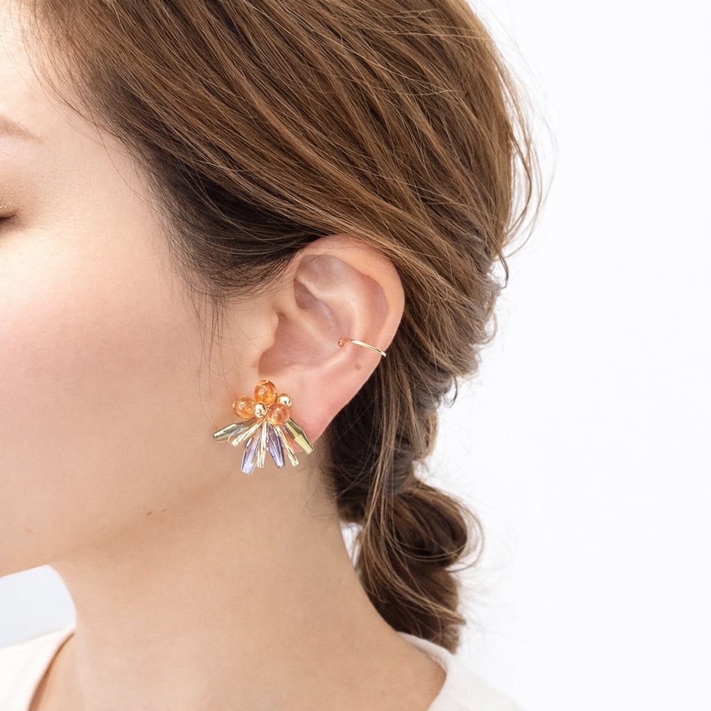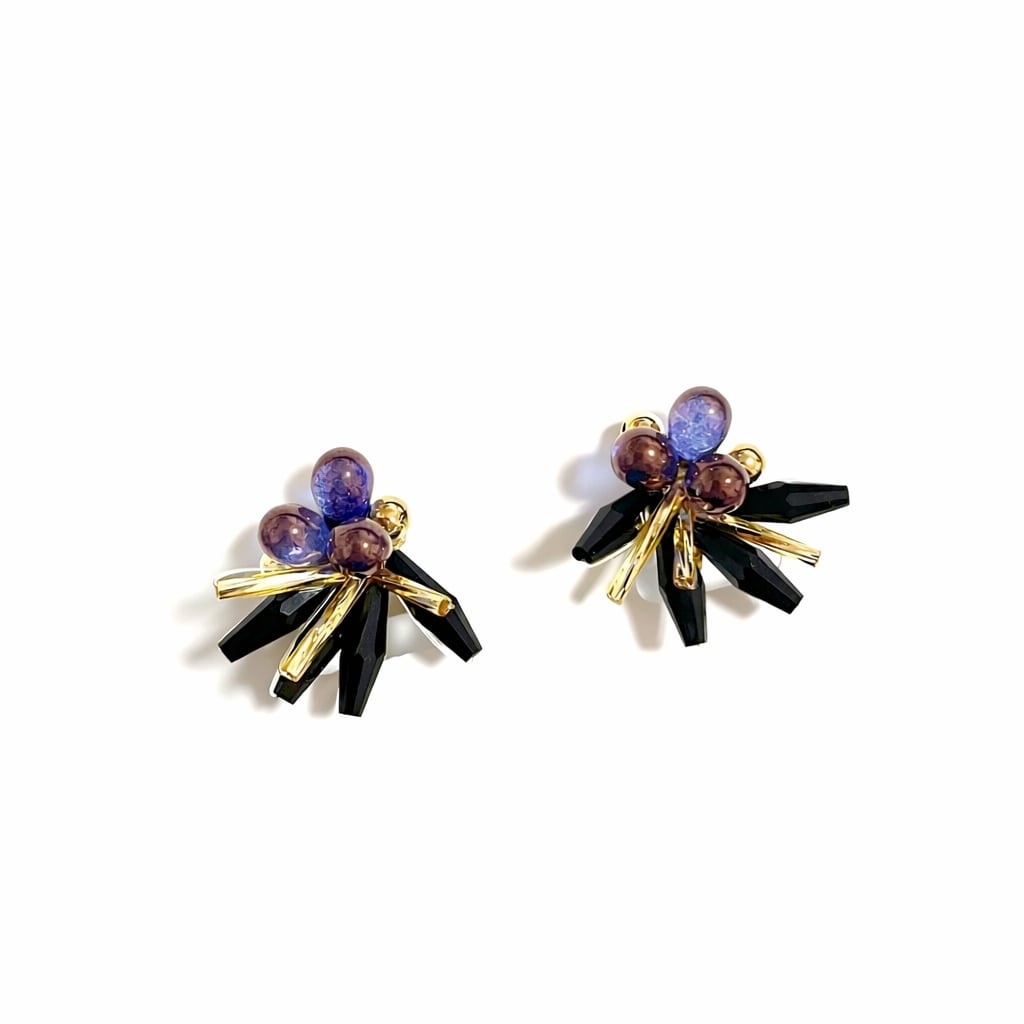 透明感のあるガラスビーズと、きらりと輝くスティックビーズを組み合わせた