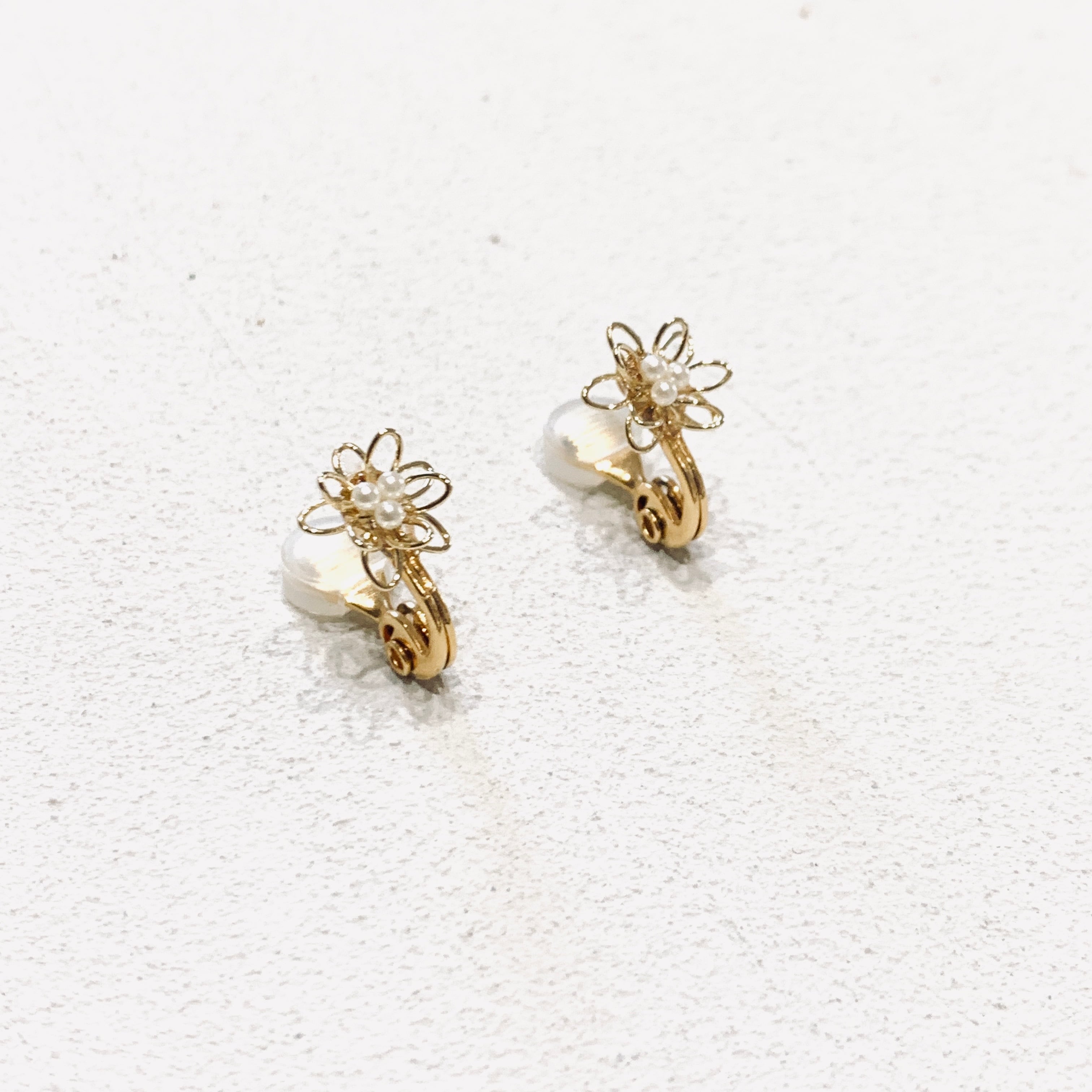 小さな線がいくつも重なった華奢なお花とパールの組み合わせは