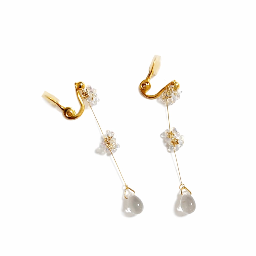 小さなクリアビーズを束ねたお花のようなモチーフに、